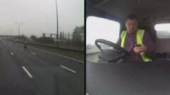 衝撃映像 なぜか荷台を上げたまま高速を走行中のダンプ・・・当然こうなる!!