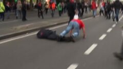 ベルギーのブリュッセルで行われた警察官による抗議デモの最中に、一人のデモ参加者が現場にいた警察署長を突然殴りつける暴力的な場面が記録されています。