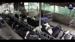 雷が落ちた直後に、複数の牛がその場で倒れて動かなくなる様子が映っています。