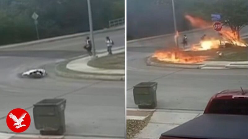衝撃映像 倒れた電柱のケーブルを盗もうとした泥棒が猛スピードで走ってきた車両に吹っ飛ばされた!!